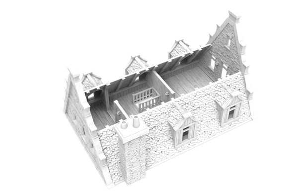 - die Grösse des Gebäudes ist in einem 28 mm Maßstab, kann aber auch noch für 32 mm benutzt werden